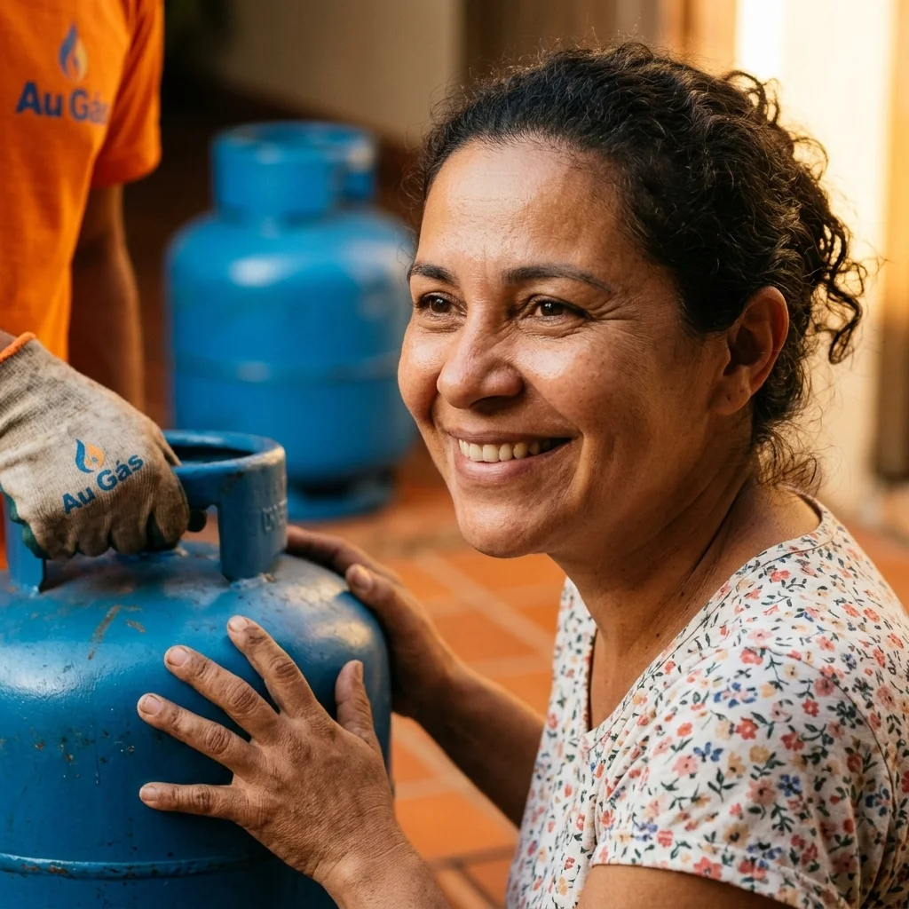 Histórico de cliente é informação sensível. O Au Gás armazena os dados seguindo a LGPD — a lei brasileira de proteção de dados. O cliente não precisa se preocupar com o que acontece com o número e o endereço dele.